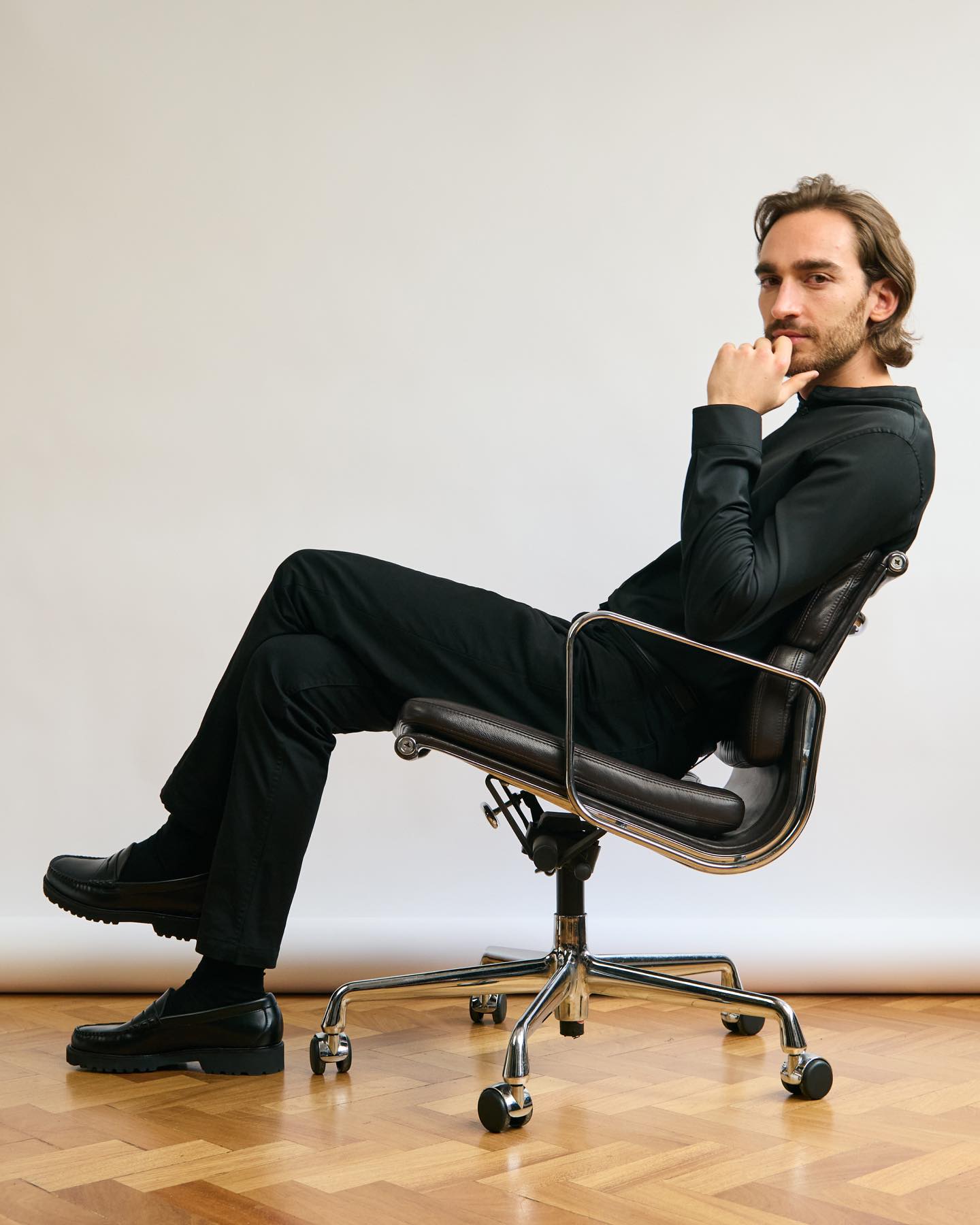 Where workwear meets contemporary fashion. Heavier than typical chinos but more refined than work pants, with reinforced knees that add character rather than looking purely utilitarian. The regular fit is perfectly proportioned for the current moment’s preference for roomier trousers.
