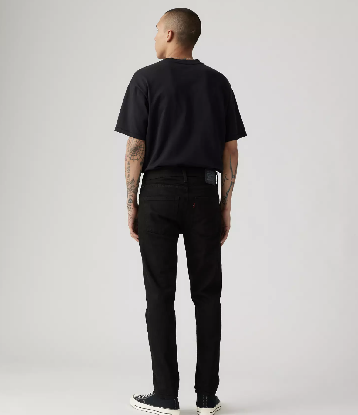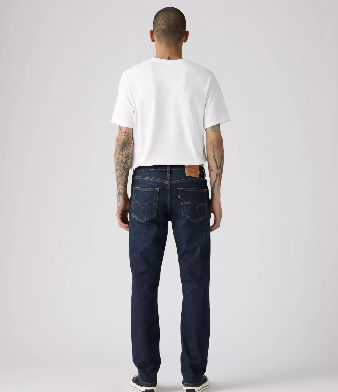 The 512 keeps a similar thigh to the 511 but narrows more from the knee down. The taper creates a more defined ankle and makes the leg opening sit closer to the shoe. This reads as a modern tapered silhouette without crossing into painted-on territory if you size the waist correctly.