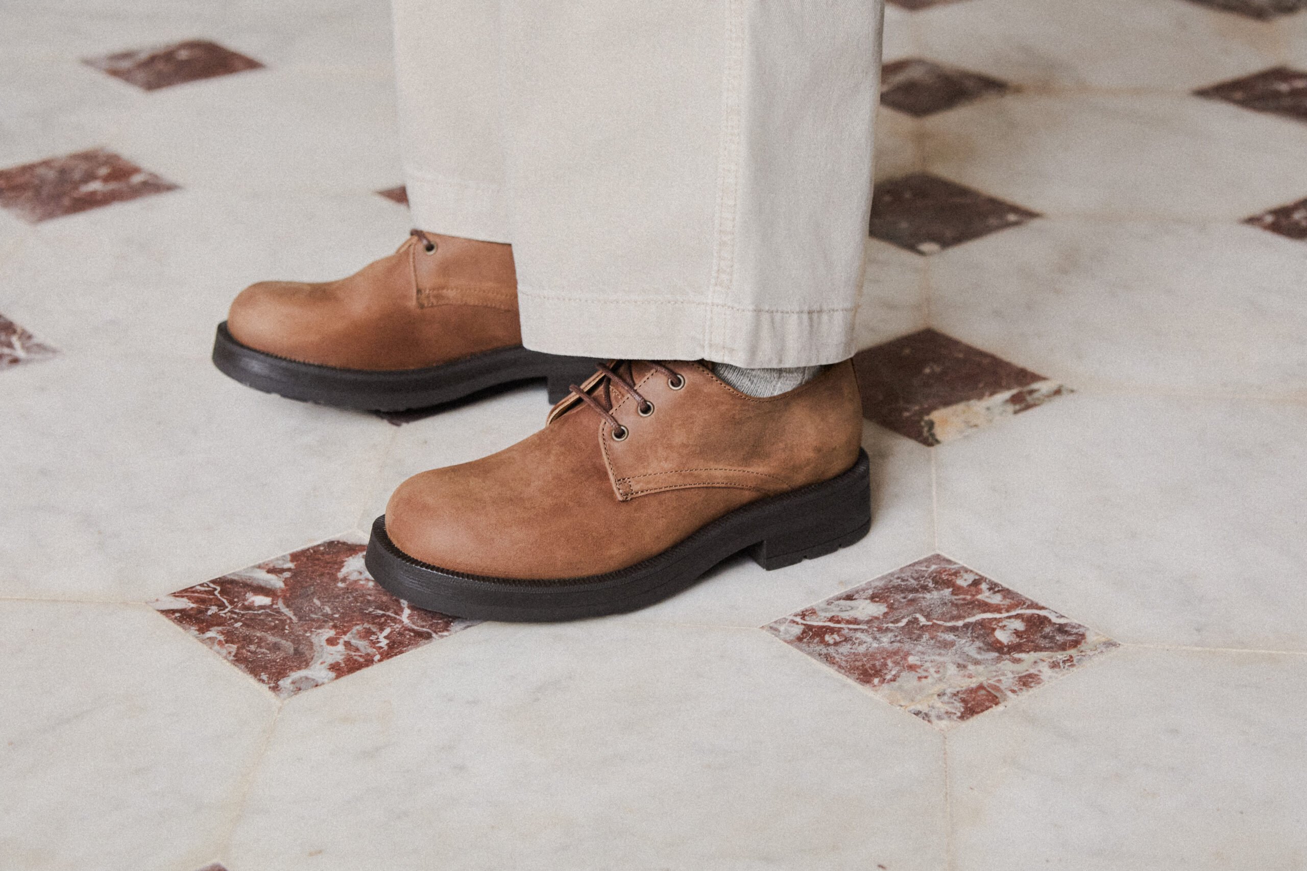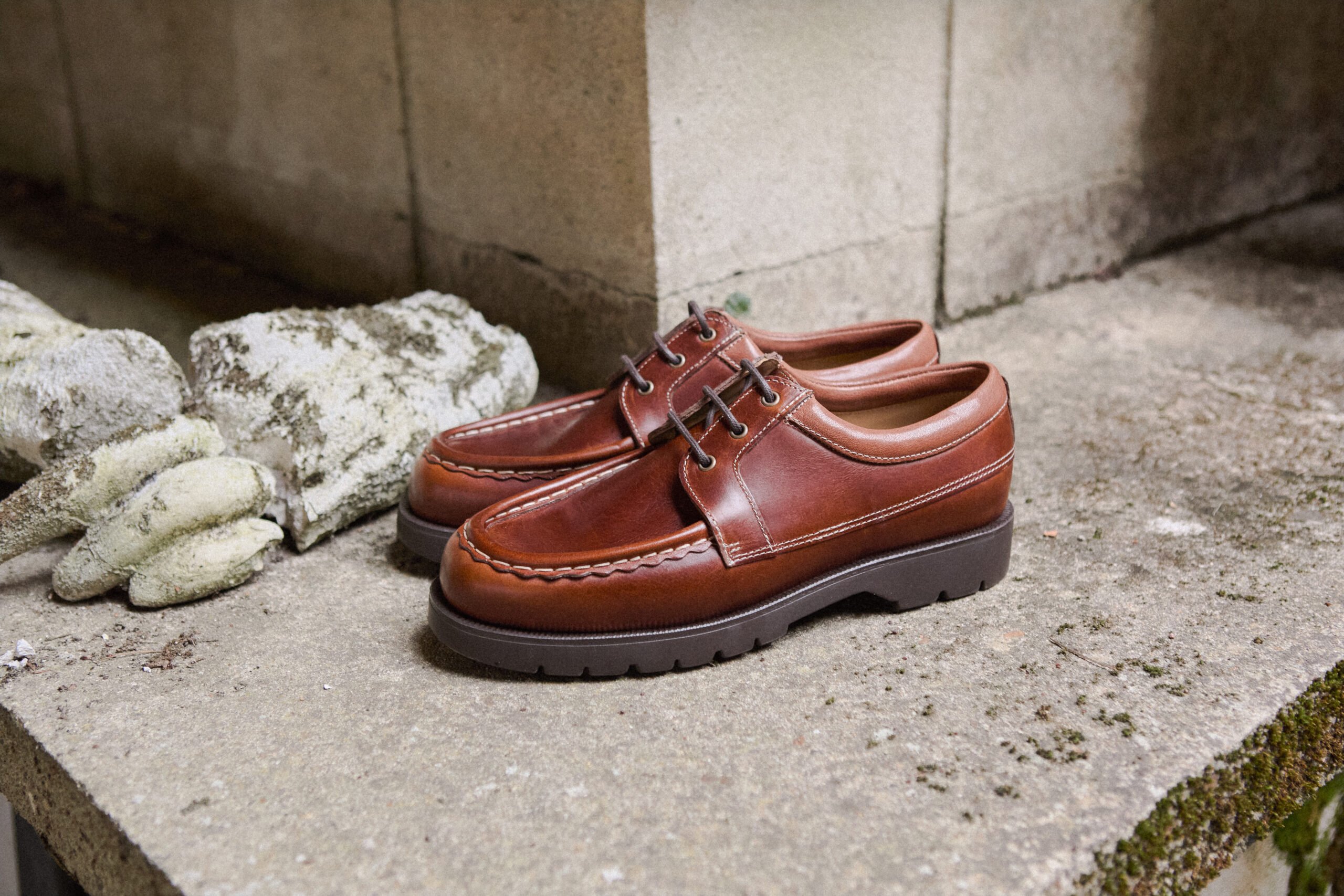 The shoe that best represents Kleman’s identity is the Padror, a moc-toe derby originally made for factory and rail workers. It has a chunky sole, thick stitching, and a balanced silhouette that feels equally suited to a workshop or a studio in Paris.