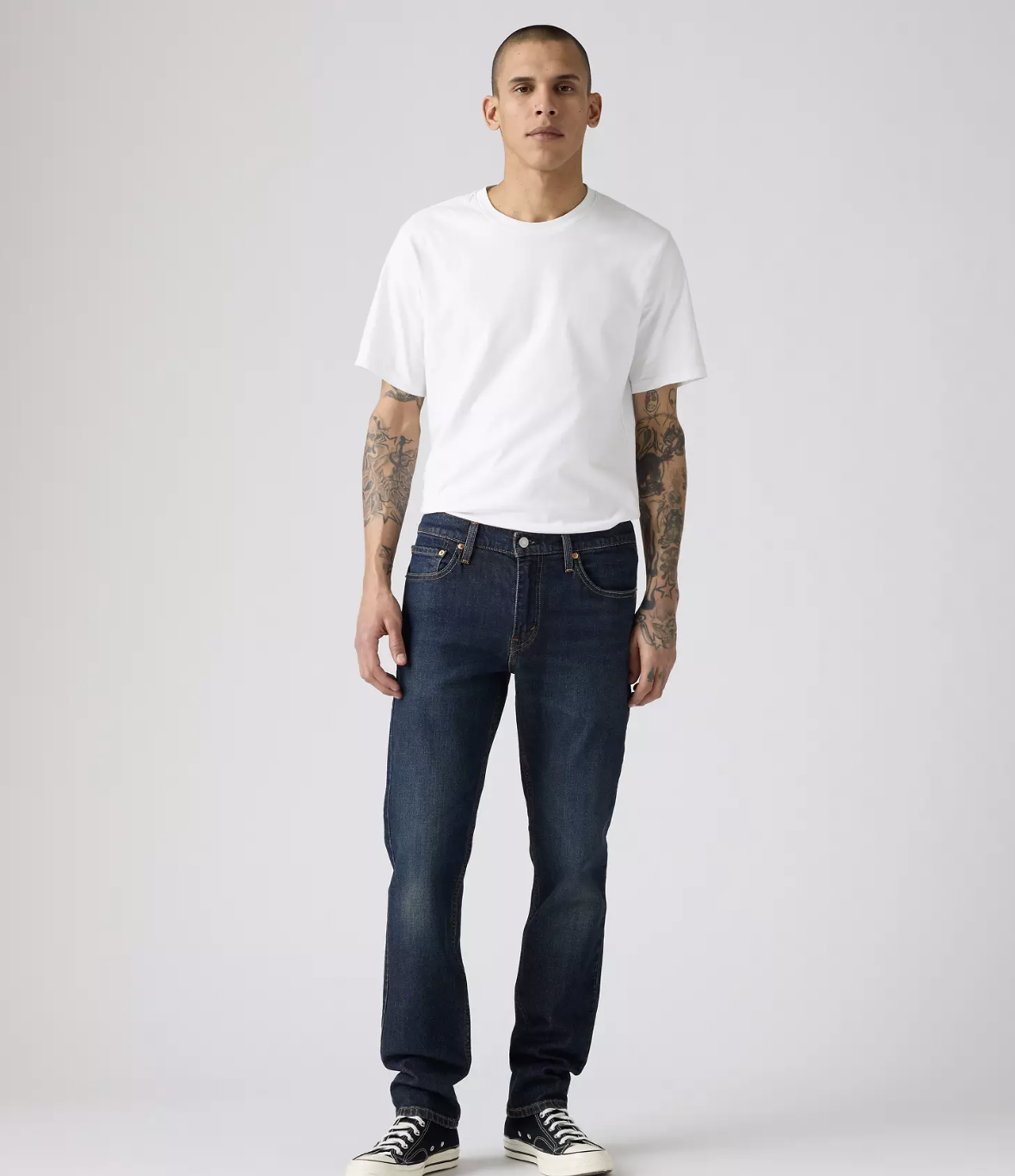 - 511: Slim silhouette without a sharp taper; mild narrowing at the ankle.